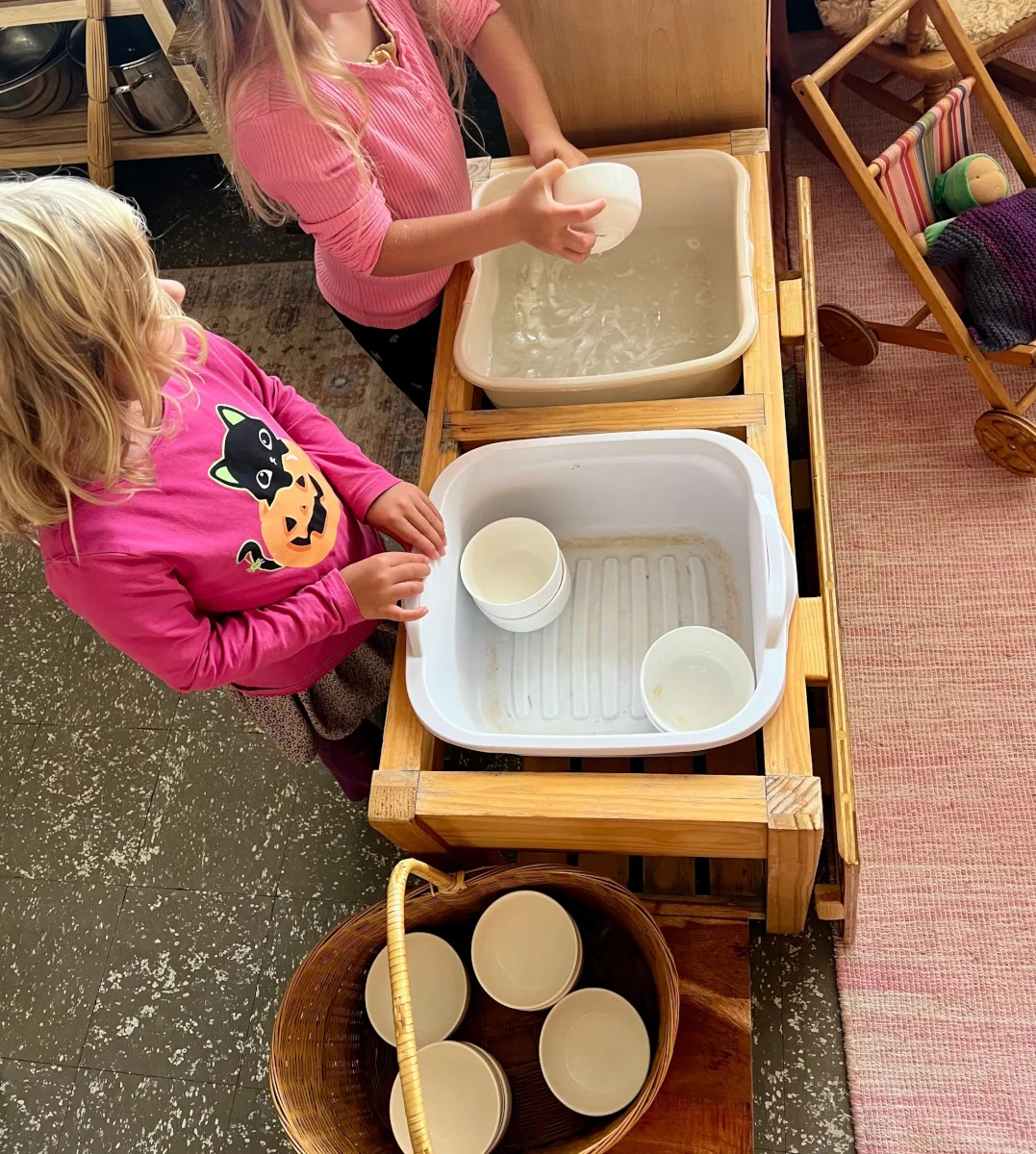 Young children learn about the world through imitation and example. Together, as teachers and parents, we take care that our actions, the environment, and the activities are worthy of imitation. A carefully selected rhythm, alternating between structured and unstructured activities, throughout the day include: imaginative play, artistic activities, singing games/circle time, storytelling & puppetry, nature experiences, and multicultural holidays and festivals. The activities are planned and designed to help the child develop their small/large motor movements, their language acquisition, and their relationships with other children and adults.